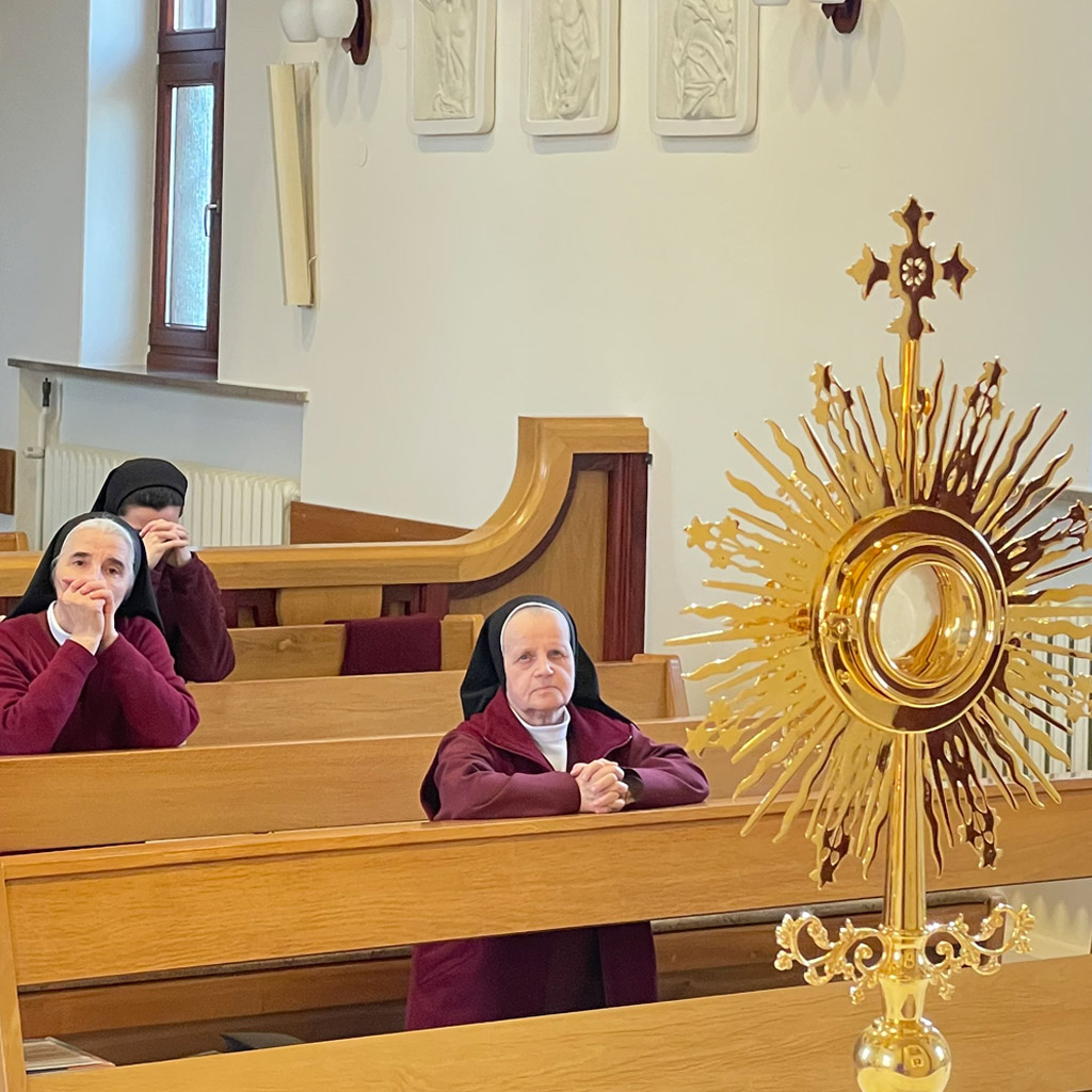 W naszej klasztornej kaplicy wpatrujemy się w ikonę Matki Bożej Nieustającej Pomocy, która jest nieodłączną Towarzyszką każdej redemptorystowskiej wspólnoty. Od Niej uczymy się nieustannie pomagać wszystkim potrzebującym i kierować oczy braci i sióstr na Jezusa: na Tego, który jest Źródłem wszelkiego dobra.