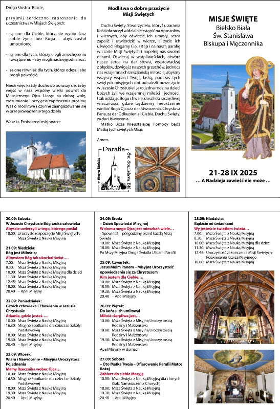 Serdecznie zapraszamy i zamieszczamy też program Misji.
