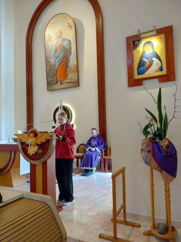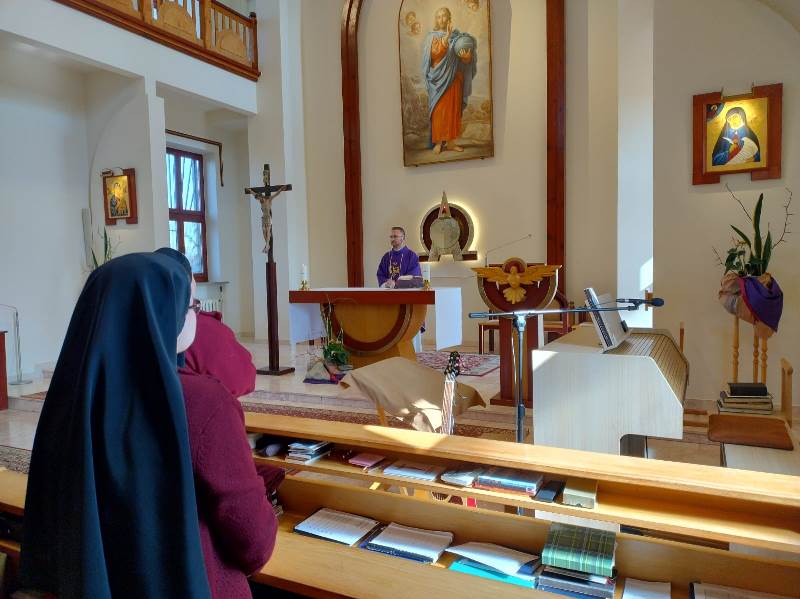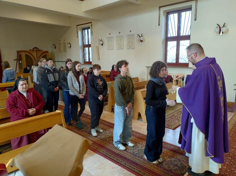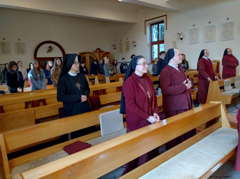 Zaczęli od celebracji Eucharystii w naszej kaplicy, sami zatroszczyli się o jej oprawę muzyczną i służbę liturgiczną. Część sióstr także uczestniczyła w tej Mszy św.