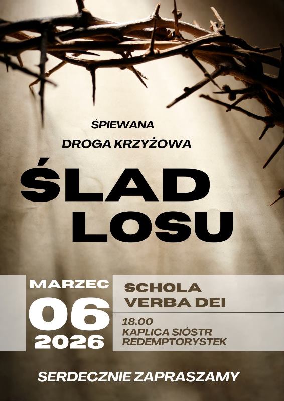 Już 6 marca 2026 roku zapraszamy do naszej kaplicy na wspólną modlitwę Drogą Krzyżową „Ślad losu”, która zostanie wykonana przez scholę Verba Dei.